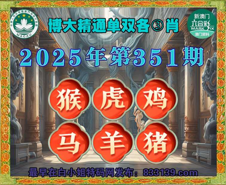 351期:【博大精通】 单双各③肖【猴.虎.鸡.马.羊.猪】开:00准
