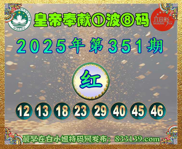 | 主题 : 351期:皇帝奉献【①波⑧码】〓独家发表 |
